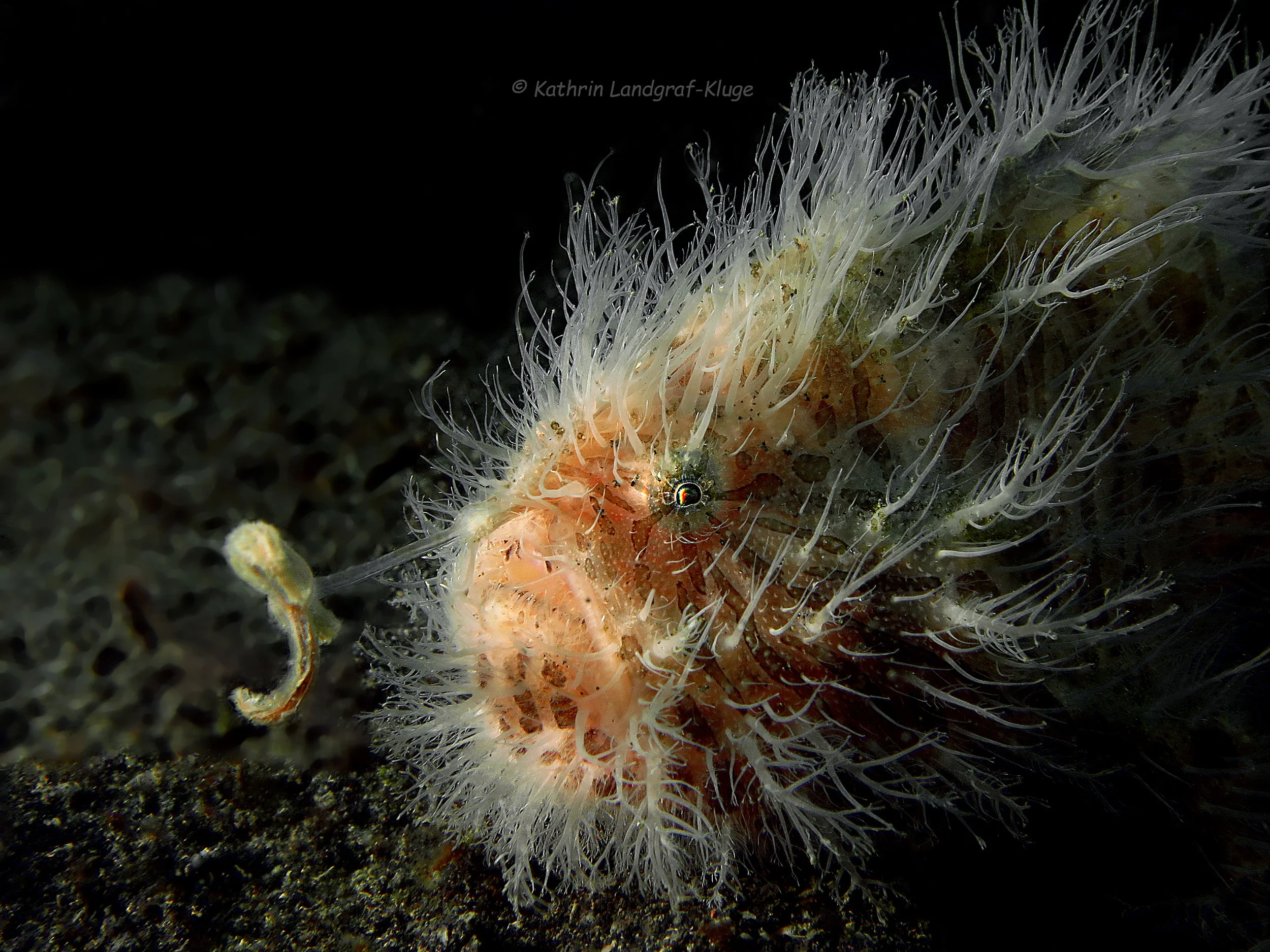 But perhaps the most intriguing characteristic of frogfish, is the presence of the so called illicium or “rod” which is topped with the esca or “lure” and placed right above their mouth. Dependent on the species, the esca can have different forms, adapted to resemble the form of fish, shrimp or tubeworm. By moving the illicium together with the esca, they mimic a potential meal to their prey.